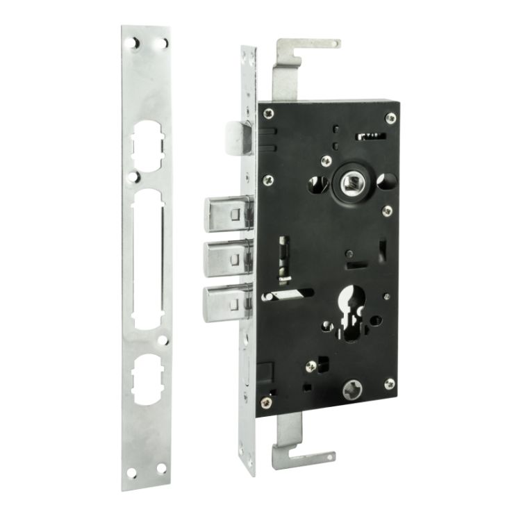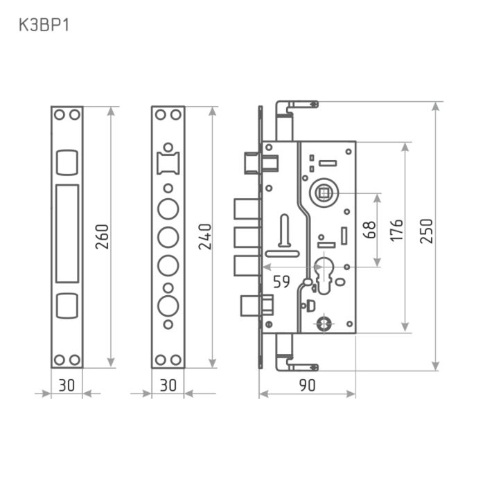 Корпус замка КЗВР-1 для китайских дверей — комплект замка предназначен для установки в входные металлические китайские двери толщиной от 35 до 70 мм. Комплект замка универсальный подходит для левых и правых дверей. Корпус замка изготовлен из стали и предназначен для комплектации с ручкой на планке и цилиндровым механизмом секретности. Корпус замка КЗВР-1 для китайских дверей имеет три круглых стальных ригеля. Гальваническое покрытие лицевой и ответной планки надежно защищающее изделие от внешнего воздействия и коррозии. Комплект замка не оснащается цилиндрическим механизмом секретности, он приобретается отдельно в соответствии с толщиной двери. Гарантия на изделие 3 года.