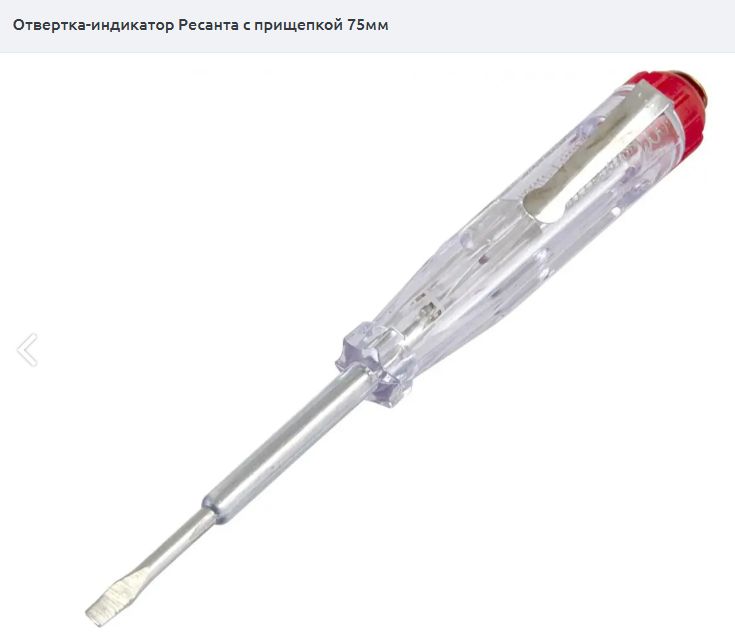 Отвертка-индикатор Ресанта 6875-17150 с прищепкой 75 мм является прекрасным инструментом для индикации напряжения переменного тока при выполнении электромонтажных работ.